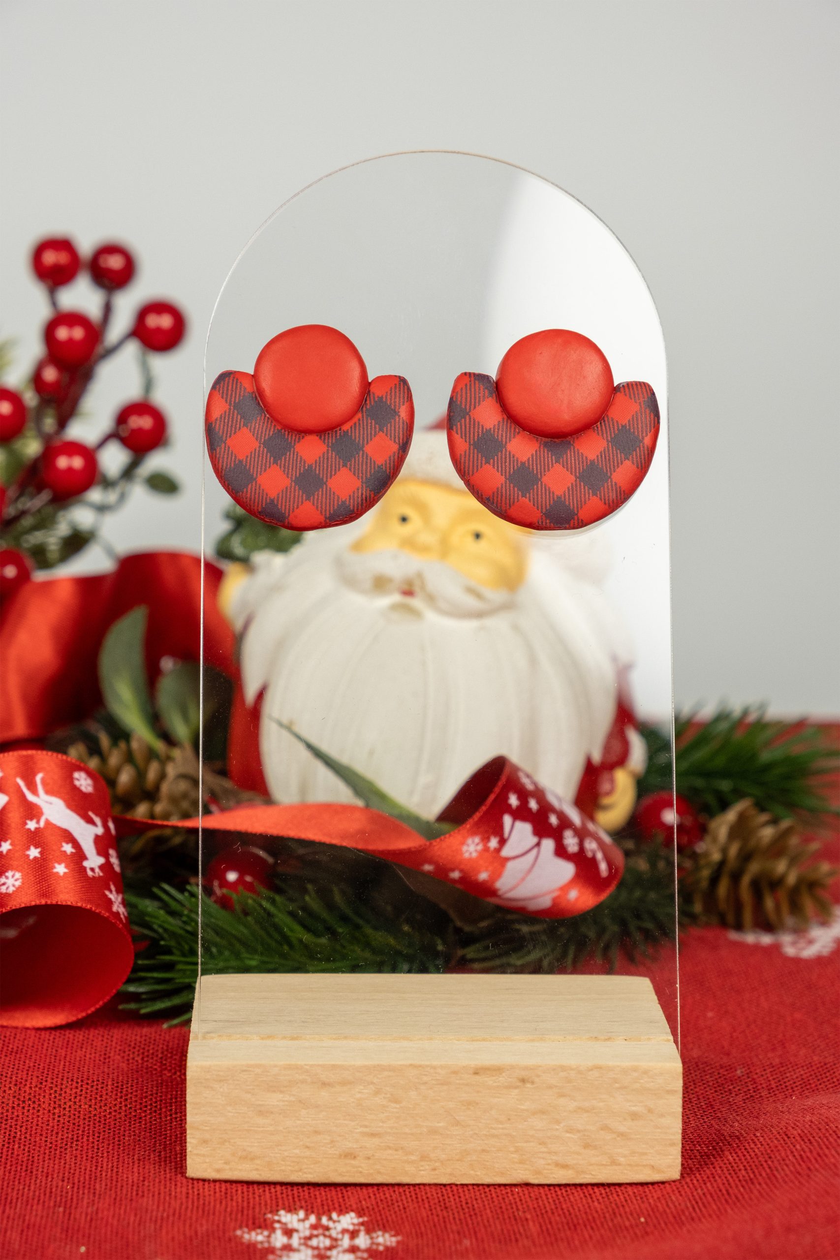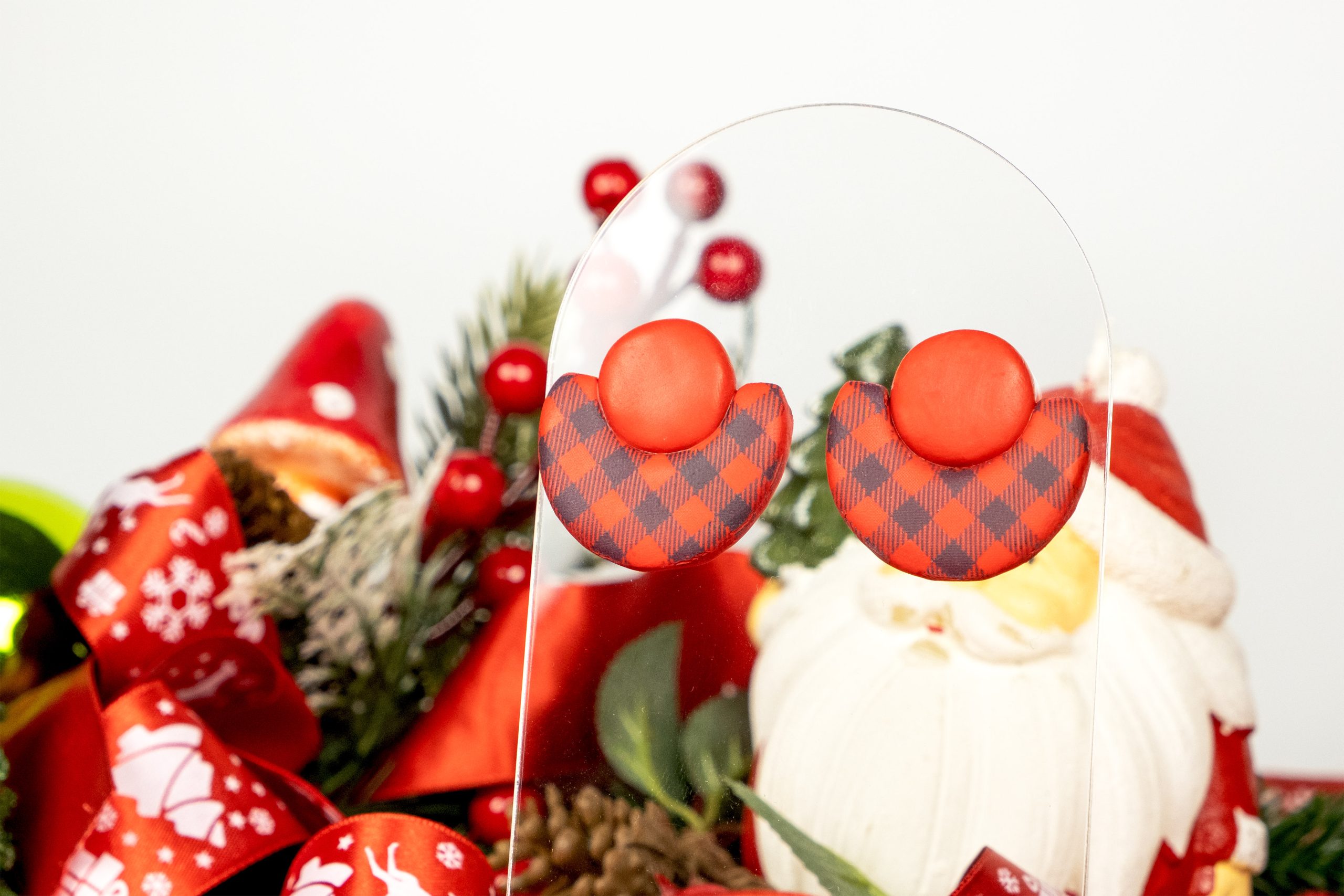 Yılbaşı şıklığını kırmızı, siyah ve altın kaplama detaylarla buluşturan zarif bir tasarım. Bu polimerkil küpe, özel anlarınızda size zarif bir ışıltı sunuyor.